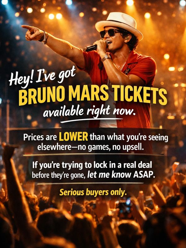 We are not affiliated with Bruno Mars or any official venue. Tickets are sourced through verified sale partners and subject to availability.